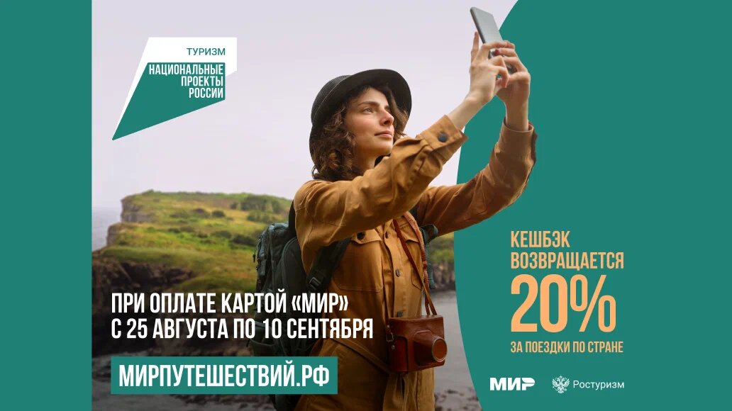 До 10 сентября осталось 5 дней. А это значит, что у вас ещё есть возможность воспользоваться программой туристического кешбэка. ❗️Напоминаем условия программы 💰Оплатите тур, круиз или проживание в гостинице в период с 25 августа по 10 сентября и получите кешбэк 20%: 🔸до 40 000 р. при бронировании гостиницы на Дальнем Востоке, участвующей в Программе, напрямую 🔸до 20 000 р. при бронировании туров и размещения, в том числе на Дальний Восток, у остальных участников программы. 🎒Отправиться в поездку с кешбэком в любой регион можно будет с 1 октября и вернуться не позднее 25 декабря 2022 года. При этом в круиз можно поехать раньше — с 1 сентября и до окончания навигации. 🧑💻Об условиях программы читайте на сайте мирпутешествий.рф. #нацпроекттуризм