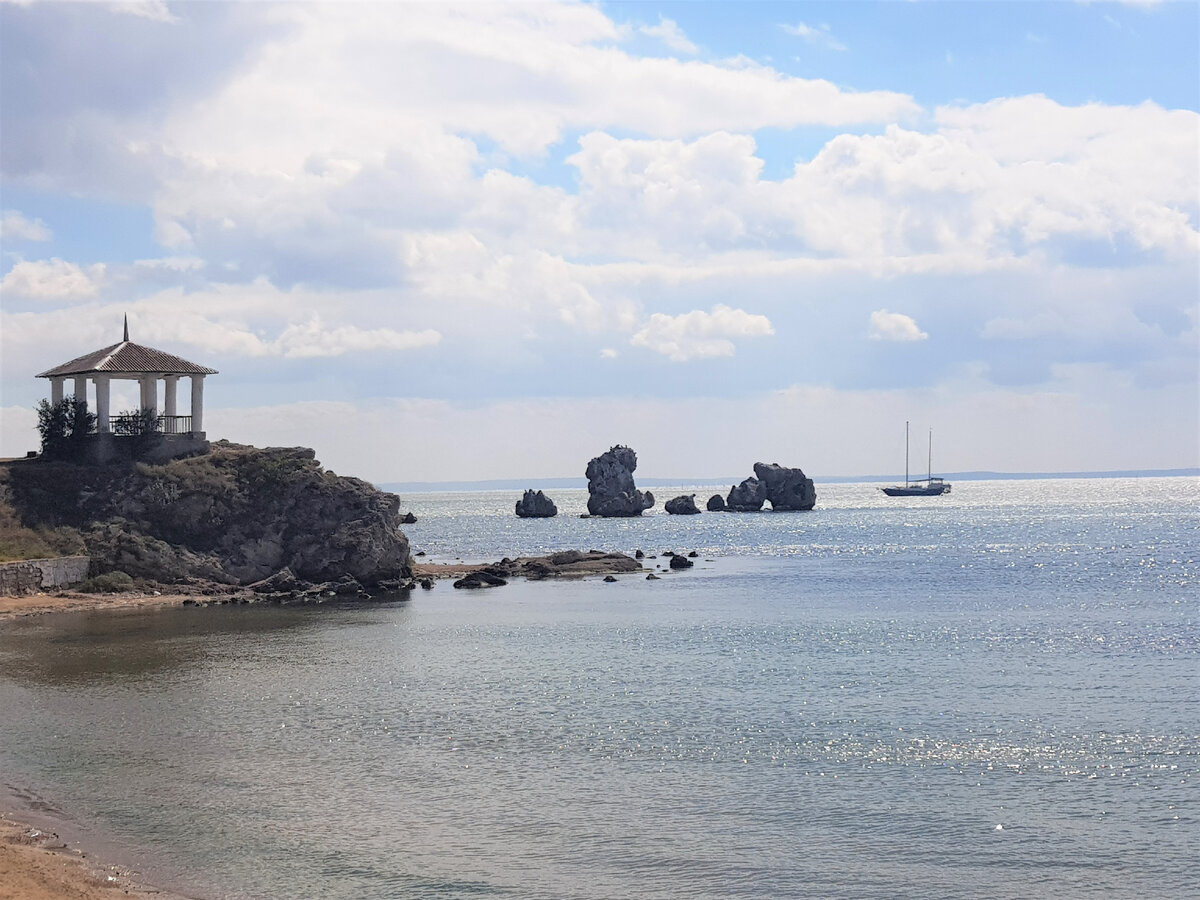 Бухта здесь очень живописная. Мне особенно приглянулись скалы в море, как парусники. Но по словам нашего случайного "гида", названия у них нет.