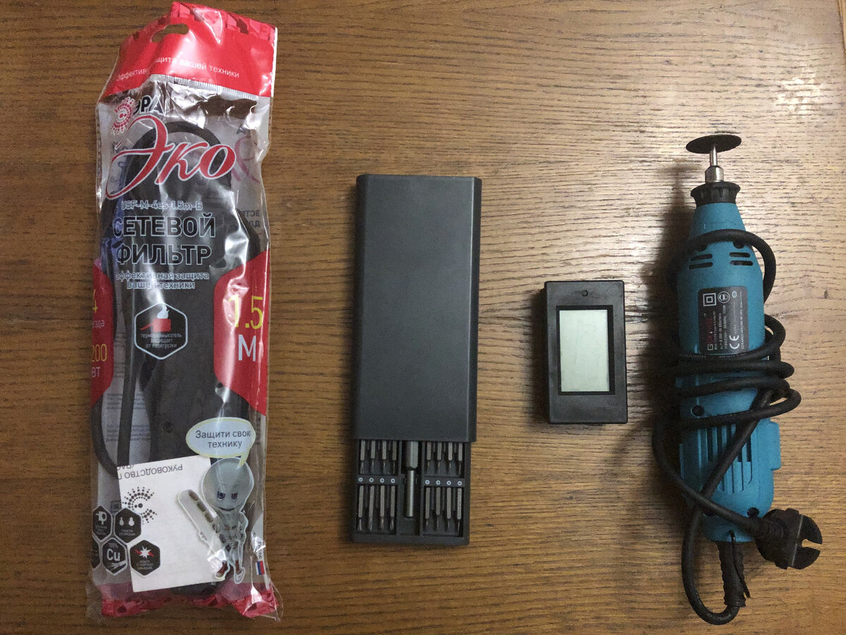 Собранное устройство позволит отследить сколько электроэнергии потребляет электрооборудование (чайник, компьютер, телевизор и т. д.) Увидите какое напряжение в розетке, какой ток потребляет чайник, дрель... Соответствует заявленная производителем мощность или нет. Если ток превысит 10 Ампер, то сработает тепловая защита и отключит нагрузку. Понадобится: Приступим к сборке. Все готово. Немного по функциям измерителя мощности "PZEM-021". У прибора есть кнопка которая выполняет следующие функции при нажатии: