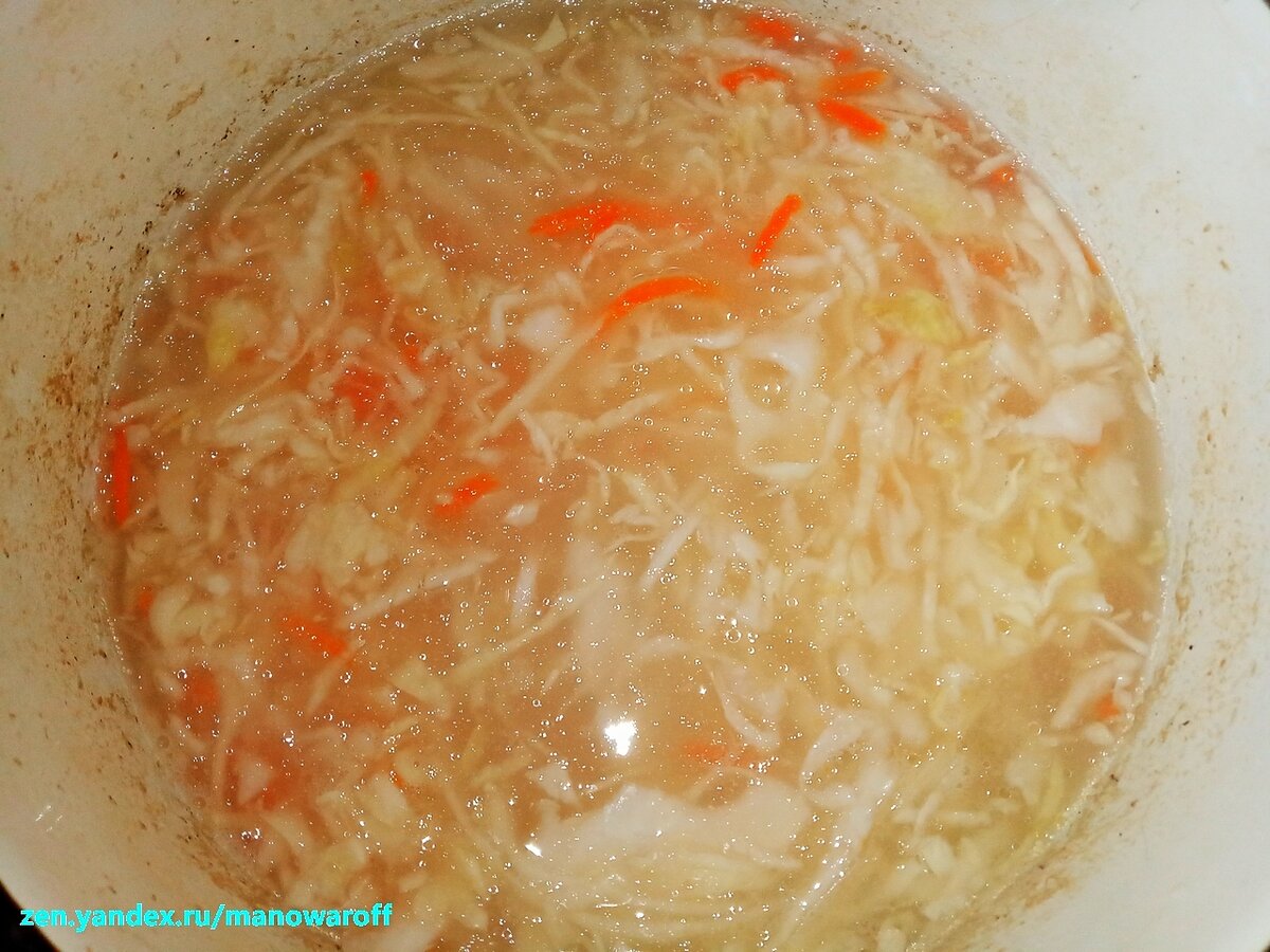 Сегодня будем готовить блюдо польско-словацко-белорусско-украинской кухни. Это суп из капусты, как можно догадаться по его названию. Родственник наших щей, но готовится исключительно из квашеной капусты, в то время как щи бывают и из свежей. Существует множество разновидностей этого супа. Я выбрал вариант понажористей. Ингредиенты: *Используйте что больше нравится - курятину или свинину. Я выбрал курицу, точнее, ее голени. **Крупу тоже выбирайте на свой вкус. У меня в наличии был только рис, так что я использовал его. В кастрюлю кладем курятину, заливаем водой, ставим на огонь, доводим до кипения, не забывая снимать пену. Убавляем огонь до минимума и, после того, как пена перестанет появляться, накрываем крышкой и варим полчаса. Курятину вылавливаем шумовкой и перекладываем куда-нибудь, чтобы она остыла. В кастрюлю кладем очищенную и разрезанную пополам картошку, доводим бульон до кипения, накрываем крышкой и варим до готовности (20-25 минут). Пока картофан варится, займемся крупой. Е