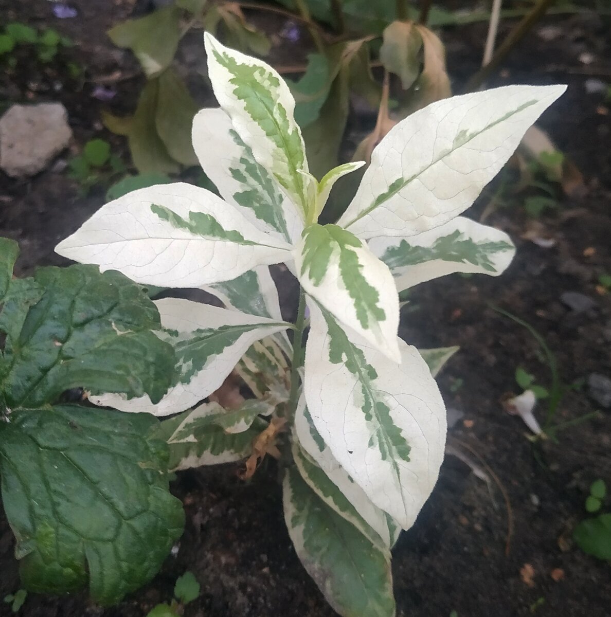 Не для кого не секрет, что при черенкование флоксов почти всегда удачные результаты. Иногда бывает воткну ветку сломаную, а она и растет себе дальше как ни в чем не бывало. Но, вот с вариегатным флоксом видимо не совсем так просто, особенно на жаре. Одна веточка была поделена на три части, из которых выжила только верхушка. Первой умерла серединка, вторым низ. В итоге живая только верхняя часть ветрчки вариегатного флокса.