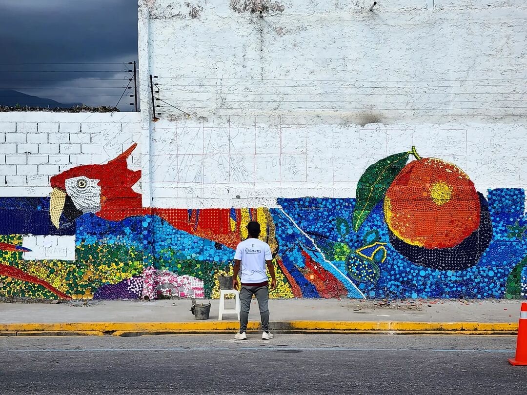 Венесуэльский художник вместе с жителями создал красочную фреску из 300 000 крышечек