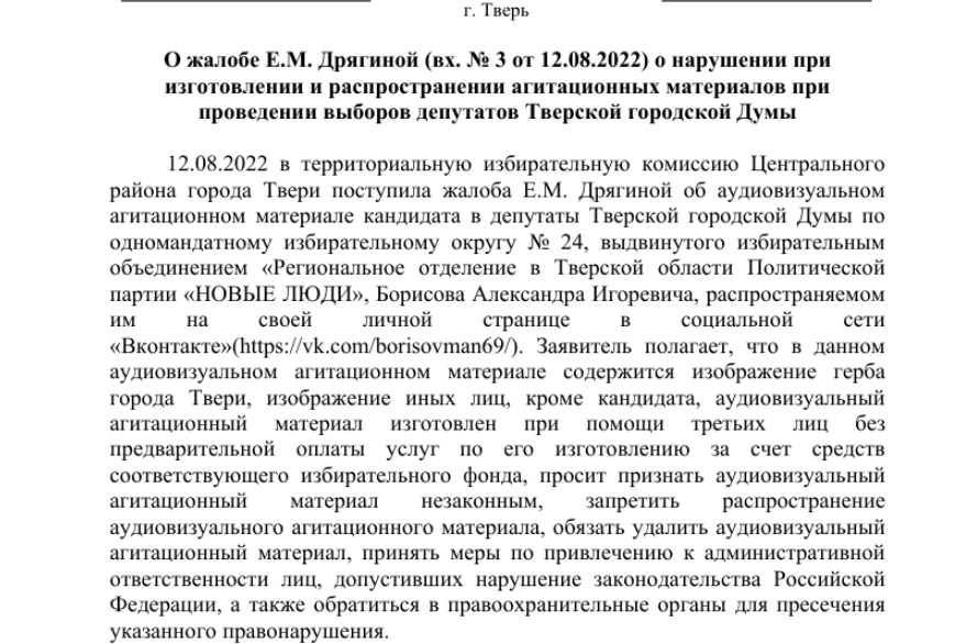 На сайте территориальных избирательных комиссий Твери (всего их четыре, по количеству районов города) можно посмотреть на что жаловались жители города во время избирательной кампании. Жаловались они не незаконную агитацию и подкуп избирателей. Если вы думаете, что этими плохими вещами занимались кандидаты от «Единой России», то заблуждаетесь.