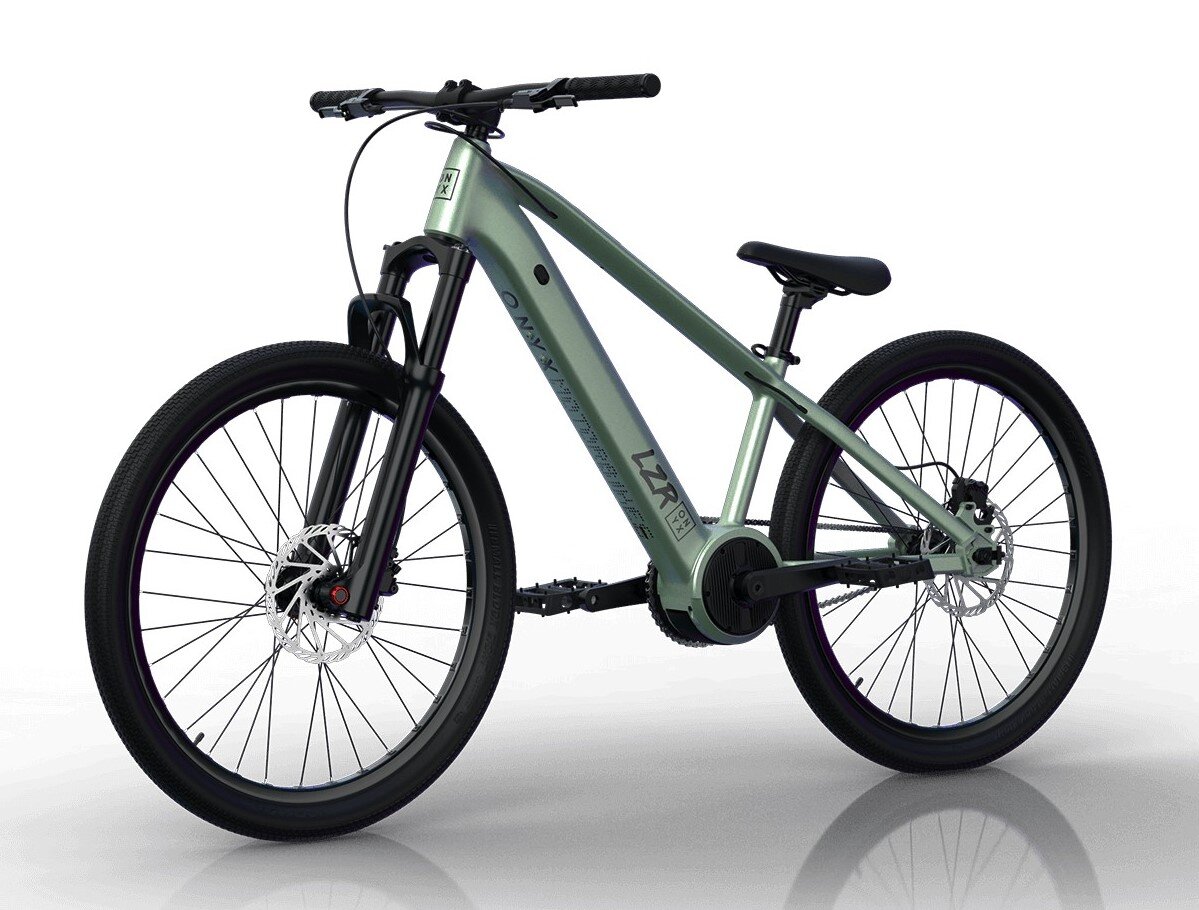 Компания Onyx выпустила две новые высокопроизводительных модели - LZR на 500 Вт и LZR Pro на 900 Вт, которые должны прийтись по вкусу любителям экстремального спорта. Рама велосипеда изготовлена из алюминиевого сплава 6061 по запатентованной технологии SWAT (Smooth Weld Additive Technology), позволяющей получить гладкие сварные швы. Она имеет характерный наклон верхней трубы и низкую посадку седла для комфортного исполнению трюков. Благодаря центральному мотору, установленному на месте каретки, Onyx LZR имеет сбалансированное распределение веса. При этом 26-дюймовые колёса на покрышках Kenda и амортизационная вилка с ходом 100 мм делают его универсальным средством как для езды по городу, так и для развлечений. Версия LZR весом 18,1 кг оснащена двигателем мощностью 500 Вт, который создаёт крутящий момент 95 Нм и разгоняет велосипед до 45 км/ч. Но стоит учесть, что имеется в виду максимальная скорость в режиме помощи при педалировании, отдельной ручки акселератора на велосипеде нет. Бата