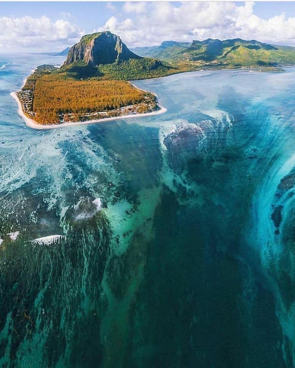 Многие из вас скажут, что я уже надоел вам со своей Африкой, в которой прожил половину своей жизни. Но тем не менее, сегодня я вам покажу Африку красивую. Наконец-то! Этот уникальный природный водопад расположен под водой и поэтому его прекрасно видно с высоты птичьего полёта, если взлететь на квадрокоптере над береговой линий Индийского океана. Но этот водопад совершенно не видно с берега. Зрелище это поистине уникальное и завораживающее, если взглянуть на водопад сверху. Подводный водопад в Африке - что может быть необычнее? Расположен этот водопад на острове Маврикий. Это настоящий действующий подводный водопад, который носит название Ле-Морн-Брабан. Водопад расположен у берегов островного государства в Южной Африке в юго-западной части Индийского океана, примерно в 900 км к востоку от Мадагаскара. В состав республики входят острова Маврикий и Родригес, являющиеся частью архипелага Маскаренских островов, а также архипелаг Каргадос-Карахос, острова Агалега и множество мелких остр