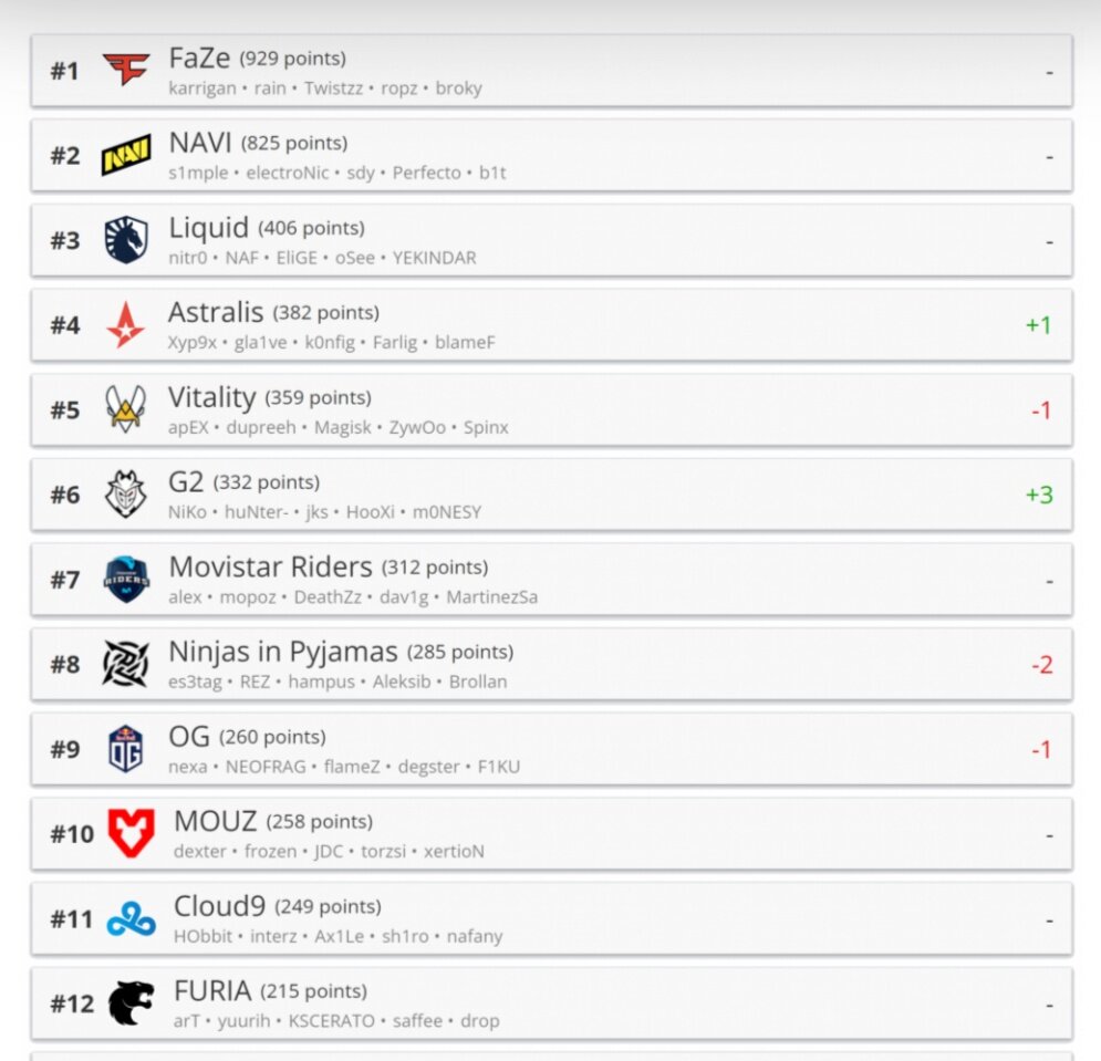 В результате очередного еженедельного обновления рейтинга лучших команд мира от портала HLTV.org состав G2 поднялся на три строчки и занял шестое место. Это изменение является наиболее значимым в группе лидеров и стало возможным благодаря успешной игре "самураев" в группе B на ESL Pro League Season 16. Также в первой десятке стоит обратить внимание на рокировку Vitality и Astralis, которые теперь располагаются на четвертом и пятом местах соответственно. Вместе с тем в топ-10 ухудшилось положение NIP и OG. В середине представленного рейтинга две строчки утратила Heroic, тогда как BIG и Team Spirit прибавили по одной позиции. Помимо этого, перестановки произошли во второй половине списка, который покинули Endpoint, HEET и Eternal Fire, а в топ-30 поднялись 1WIN, Complexity и Wings Up. Рейтинг от HLTV.org обновляется еженедельно и в первую очередь учитывает результаты за последние два месяца. В расчет также идут достижения команд за последний год, при этом количество очков за прошлые успе