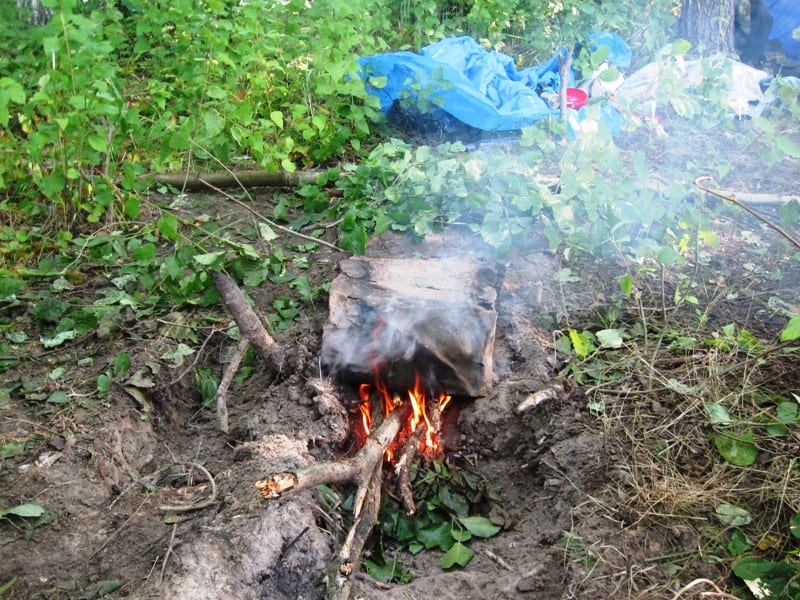 Коптим рыбу прямо на рыбалке. Если вы находитесь в отпуске или просто на рыбалке с ночёвкой, то, ей-ей, скорее всего, нередко возникает желание отведать свежей копчёной рыбки, особенно если в улове есть крупный окунь. Эта рыба просто бесподобна в копчёном виде, когда попросту разламываешь рыбину на две части и ешь нежное ароматное мясцо прямо с толстой окунёвой кожи. В копчёном окуне почти не ощущаются кости. Но речь идёт, конечно, об окуне горячего копчения. А приготовить рыбу можно очень просто, прямо на берегу реки, озера, водохранилища. Существует множество способов, но будут приведены три. Способ 1 Это наиболее простой способ приготовления рыбы горячего копчения прямо на рыбалке. Он не требует специальной коптильни, но желательно иметь под руками сапёрную лопатку, да хотя бы детскую, только относительно прочную. Для чего? Чтобы выкопать неглубокую траншею длиной около 1,5-2 метров и подвести её к небольшой ямке. Траншея – это дымоход, а ямка – коптильня. Но здесь имеется секрет. Н