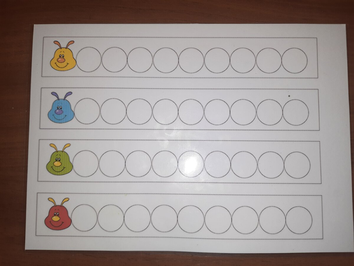 Захотелось про неё рассказать. Рассказать, какая она многофункциональная. Может быть, кому-то пригодится. Свою гусеницу я распечатала на цветном принтере и заламинировала. Это сделано для того, чтобы использовать её многократно. Для одного ребёнка можно делать одноразовую картинку или даже вообще самим нарисовать.