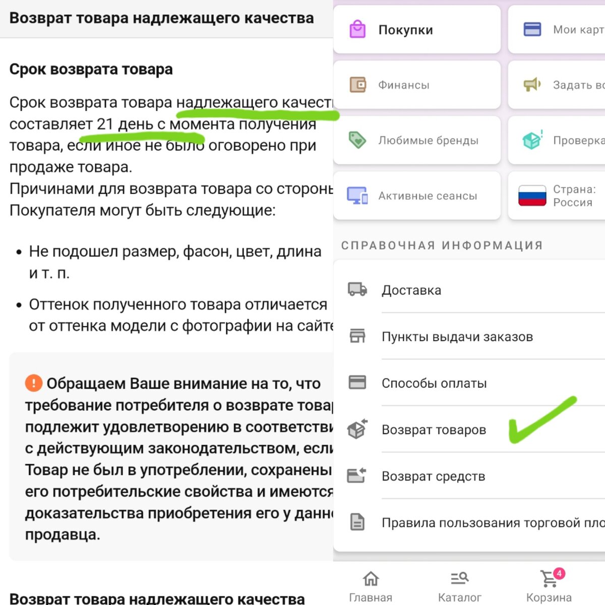 Личная история. Когда я пошла в первый класс,при выполнении д/з дергала маму по пустяковым вопросам.Она один раз подсказала,второй,третий, а потом как-то раз ответила мне : "у тебя есть словарь и справочник, поищи сама что тебе нужно!" Ладно ребенок.В школе - новой для него обстановке. По привычке, на автомате может у мамы спрашивать! И то мама стала приучать к самостоятельности! НО! У нас часто на пв ВЗРОСЛЫЕ клиенты задают вопросы, так же как дети,когда вся необходимая информация есть у них в лк! В чем проблема посмотреть разделы в приложении, когда особо заняться нечем? Например, сидишь в очереди в поликлинике,на вокзале, едешь в транспорте, стоишь в пробке,ждешь ребенка в вестибюле школы и т.д ? 1.Про возврат вещей: Если одежду,обувь примеряли дома, то просто приносите в "родной " упаковке,со всеми этикетками,в пакете со штрихкодом, в надлежащем виде. Если брака нет, то никаких заявок создавать не надо! Вчера мужчина принес на возврат детские чешки.Диалог: - заяв