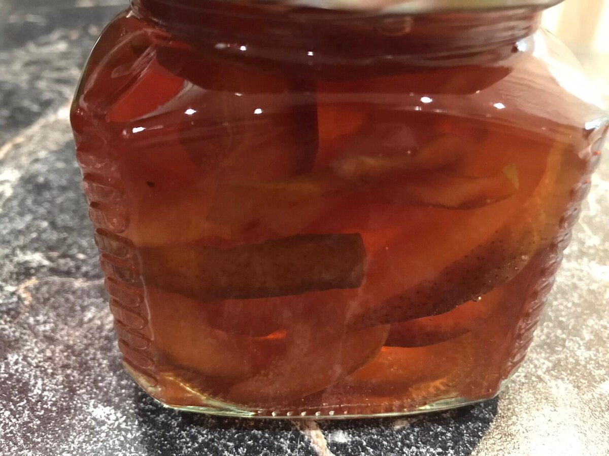 Потрясающее варенье! Карамельный привкус...Целые кусочки груш, которые не разваливаются даже спустя год... Это стоит попробовать! Варить его очень просто. Очень важно использовать жесткие сорта груш. Я уже не в первый раз использую сорт "Форель". Груши в готовом виде(без сердцевины) 1,5кг Сахар-песок 1,5кг Вода 250мл Груши хорошо моем. Вырезаем сердцевину и нарезаем продольными дольками вместе с кожурой. В ёмкости для варки смешиваем сахар с водой. Ставим на небольшой огонь. Прогреваем, постоянно помешивая, до растворения сахара. В сироп добавляем дольки груш и хорошо перемешиваем. Доводим на небольшом огне до кипения и варим 5 минут. Остужаем до тёплого состояния(примерно 4-5 часов) Через 5 часов опять доводим до кипения и варим 5 минут. Опять остужаем до тёплого состояния. Через 5 часов опять доводим до кипения и варим 30 минут. Стеклянные банки моем с содой и стерилизуем. Я ставлю в микроволновку на 3 минуты. Можно использовать духовой шкаф (200 градусов на 15 минут). Крышки я исп