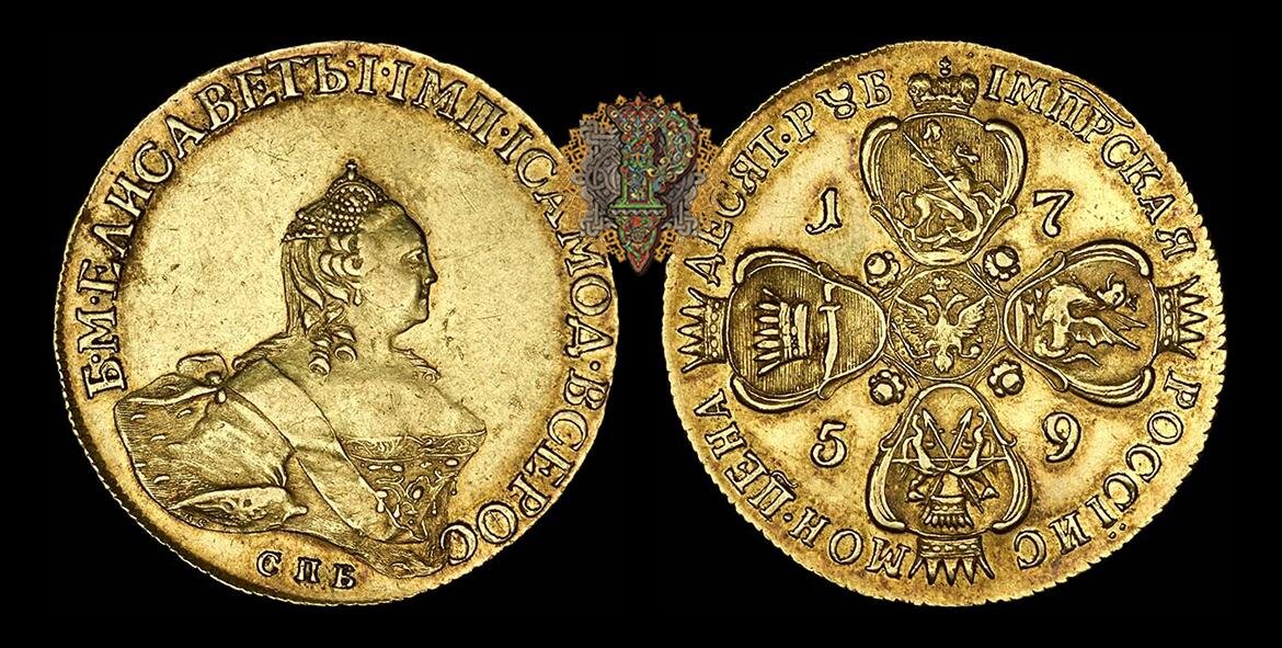 5 рублей 1759 года, буквы СПБ-BS Елизавета Петровна (золото)