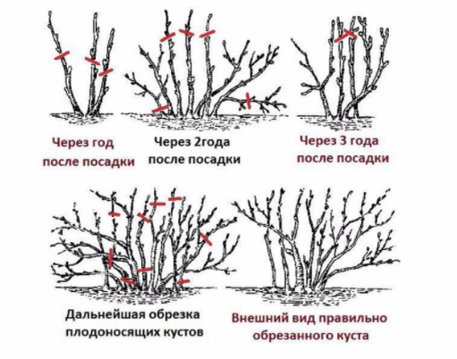 3) Взрослые кусты обрезаем согласно следующему алгоритму: