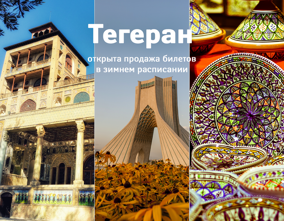 Здесь дворцовый комплекс «Голестан» хранит тайны истории и притягивает пышной красотой интерьеров, инженерными находками, музейными сокровищами. Восточная сказка оживает на извилистых и запутанных улочках Тегеранского базара – в калейдоскопе сверкающей посуды, расписных шкатулок, пряностей, орехов и сладостей. И, конечно, вы догадались, что одна из традиционных чайхан – лучшее место для отдыха от суеты, изучения местной кухни и традиций. А после можно отправляться на смотровую площадку башни Милад, в город кино, к башне Азади – гулять в окрестностях, отдыхать в музее и библиотеке, которые разместились внутри. Полеты из Москвы в Тегеран будут выполняться на Airbus A321 по средам и субботам. Билеты доступны в продаже на сайте, в мобильном приложении, а также по круглосуточным телефонам контакт-центра: +7-495-223-5555 (Москва), 8-800-444-5555 (звонок по России бесплатный) и в офисах собственных продаж. 🧾Перед поездкой проверяйте актуальные данные о действующих правилах въезда для пассажи