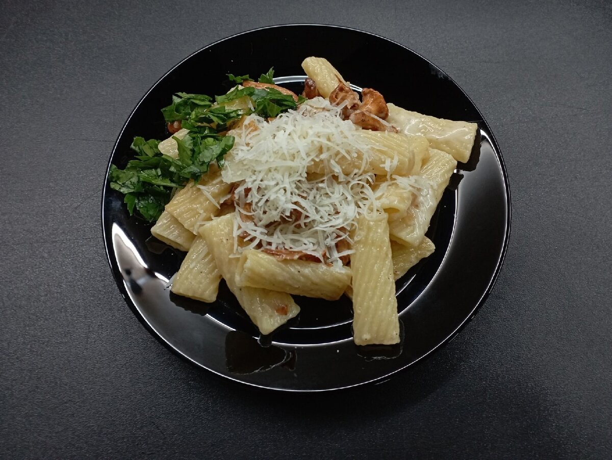 Затем добавляем соль/перец, сметану и чеснок, жарим еще 3 минуты. Следом перекладываем макароны и натертый сыр, немного пармезана оставьте для подачи. Все хорошо перемешиваем, обжариваем еще 3 минуты помешивая. Выкладываем на тарелку, посыпаем пармезаном и петрушкой. Приятного аппетита) #пастасгрибами #паста с лисичками #пастарецепт #пастассыромигрибами #вкуснаяпаста #пастанаужин #рецептпасты #быстрая паста #паста на скорую руку