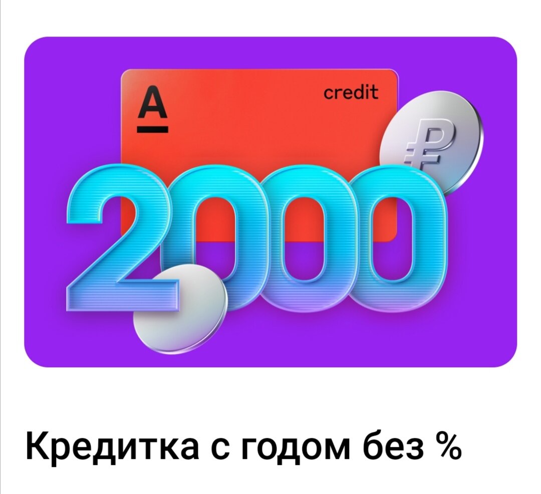 У Альфа-Банка классная акция: заплатят по 2000 ₽ тебе и мне, если закажешь кредитку с годом без % по моей ссылке: