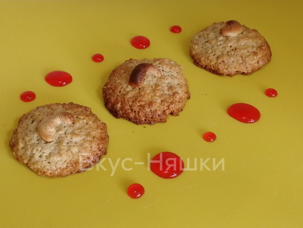 Такое печенье обожают дети, ну и взрослые тоже=) Лично я люблю его, что с одними и теми же ингредиентами возможно сделать несколько разновидностей. И получить либо нежное печенье, либо хрустящее. Всё дело в густоте теста. Приступим. Ниже ингредиенты и на выходе вы получите 1 противень печений, около 12-16 шт в зависимости от размера печенек. Вам понадобится: 1 - 1.5 стакана овсяных хлопьев №2 (но можно и №3) Лично мне больше всего нравится вариант с кешью и грецкими орехами) Орехи нужны для украшения. Но можно ещё немного измельчить и добавить в само тесто. Тоже будет вкусно. Я каждый раз делаю по-разному в зависимости от наличия орехов и своего желания. Приготовление: Вот тут самое интересное. Если вы хотите печенье мягкое и нежное внутри, то тесто должно быть очень густым и держать форму. Можно еще добавить немного хлопьев и муки. Если вы хотите более плоское печенье и хрустящее, то делаете тесто не очень густым. А вообще я рекомендую попробовать сразу 2 варианта и половину теста до