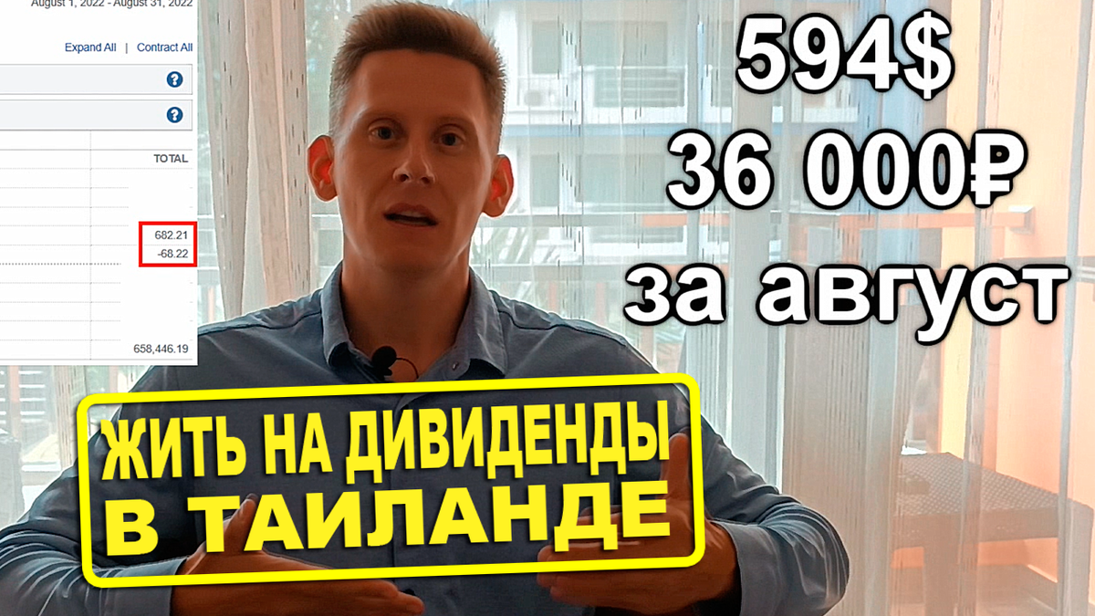 Возможна ли жизнь на дивиденды в Таиланде? Как получать дивиденды по всему миру и жить на пассивный доход? Как добиться финансовой независимости с акций? Друзья, сегодня вторник - время отчетного выпуска рубрики "Жизнь на дивиденды". И я снимаю этот выпуск в Таиланде, потому что это возможно! Просто возможно! Жизнь на дивиденды возможна везде - если вы инвестируете в качественные ценные бумаги у надежного зарубежного брокера. Но давайте сначала посмотрим на цифры пассивного дохода. Август - промежуточный дивидендный месяц, так что выплата за август не очень большая - "всего лишь" 594$ дивидендов после налогов (или 36000 рублей по курсу на отчетную дату). Вроде бы совсем немного, да. На такие дивиденды в Таиланде жить не будешь. Но не забывайте, что важно оценивать ДЛИТЕЛЬНУЮ дистанцию инвестировать и смотреть на СРЕДНИЕ дивиденды. А вот они уже очень интересные - с начала года я получил 10476$ дивидендов с учетом налогов или в среднем 1310$ в месяц. Уже кое-что, уже неплохо, да? Пр