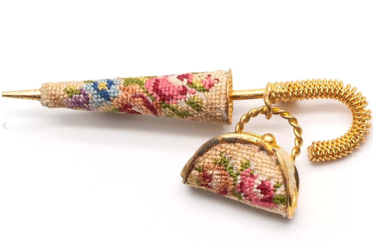 Не знаю, как у Вас, а здесь осень с первого же дня показала себя во всей красе! Холод, ветер, сумасшедший дождь и тоскливо проглядывающее солнце, которое с его теплой погодой выгнали без предупреждения. Зато теперь точно больше буду проводить времени с брошками, ведь на улицу даже не хочется. Вот и вспомнила я про шикарные броши зонтики для осенней погоды, которые встречала на просторах интернета. 1. Зонтик с вышивкой Почему вспомнила про броши зонтики? Потому что об одной такой я грезила и упустила. Брошь в виде зонтика с сумочкой, украшенных с помощью микровышивки. И пусть на украшении есть следы времени, мне она показалась такой привлекательной, что захотела заполучить ее, но не удалось. Единственное, что осталось, так это фотография, которую успела сохранить. Причем очень удивилась, когда встретила аналогичный вариант. Вот подобная брошь. Похоже сделана одним производителем. И еще одна, выполненная в той же технике. Где-то вычитала, что эти два аксессуара собраны в один дизайн не п