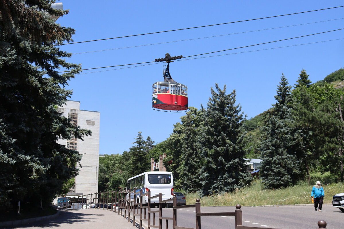 Прогулку мы начинаем от нижний станции Канатной дороги, строительство которой было начато в 1965г. Проект был разработан институтом "Грузгипрошахт". Автор проекта В.М. Лежава. Открытие канатной дороги состоялось 24 августа 1971 года. И теперь в предпоследнюю субботу августа жители Пятигорск празднуют День Канатной дороги.