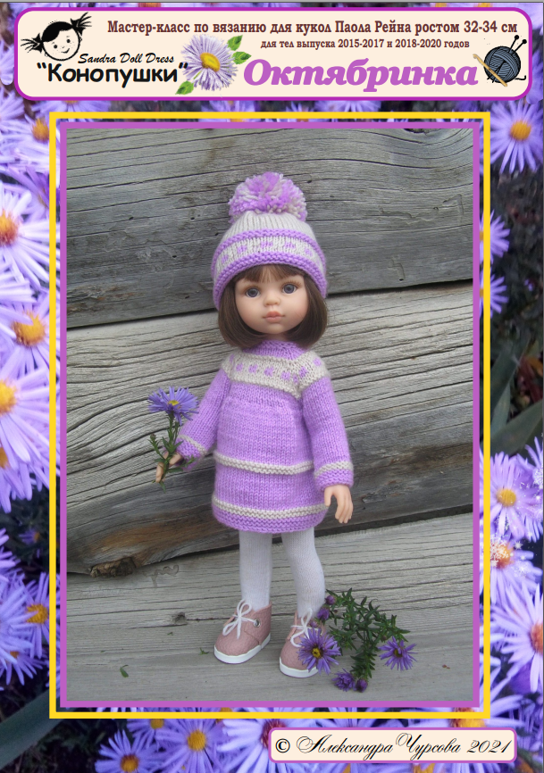 Мастер-класс "Октябринка" - вязание спицами, комплект с простым жаккардом для кукол Паола Рейна ростом 32-34 см. Часть 1. Платье.