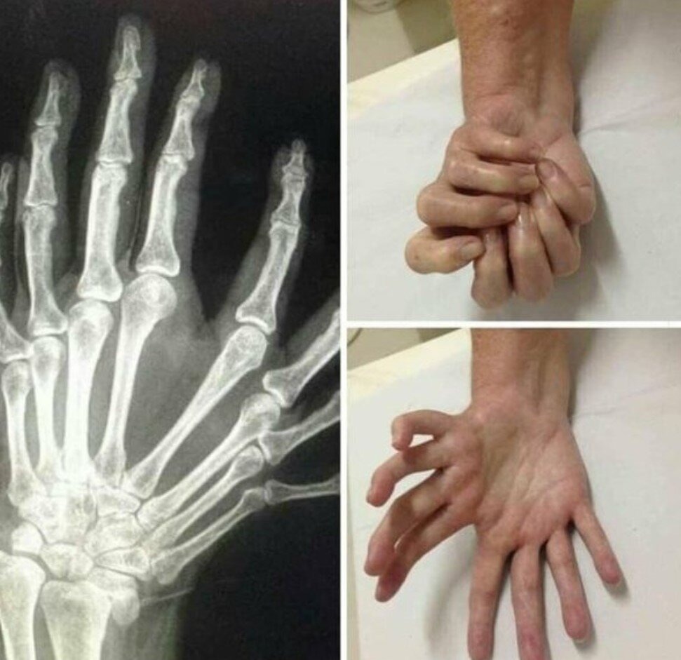 Синдром зеркальной руки - чрезвычайно редкий синдром, который был диагностирован всего 100 раз во всем мире. Его также называют локтевой димелией. Болезнь не является наследственной и может быть вызвана генетической мутацией. Кисти часто соединяются на ладони и, как правило, симметричны. Рука пострадавшего выглядит так, как будто она сложена вдвое. Дополнительные пальцы соединены с дополнительными костями, которые проходят вдоль запястья пользователя и иногда доходят до локтя. Впервые это заболевание было описано в 1587 году, но с момента этого открытия в медицинской литературе было задокументировано только 72 случая, и некоторые случаи, возможно, остались незамеченными в слаборазвитых частях мира. Одна из попыток сделать этих людей "презентабельными" выглядит так. Это маленький Эван через семь недель после операции, и я думаю, что принцип "меньше значит лучше" применим в данной ситуации. Если Вам понравилась статья, делитесь, комментируйте и ставьте лайк, это помогает каналу. Так же ч