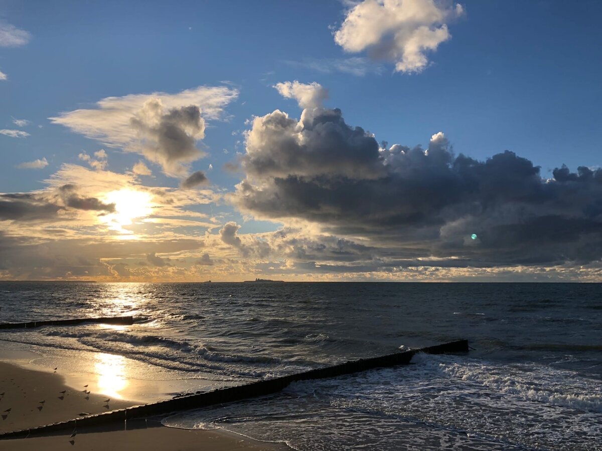 Первые осенние деньки были довольно солнечными, но все же осенними. Температура воздуха, несмотря на солнышко, довольно резко снизилась. Накануне стояла аномальная жара, но как только календарь объявил осень, осталось всего 17-18 градусов. Около моря дул особенно сильный и холодный ветер. Но на мое счастье вода в Балтике тоже градусов 17-18. Что делает человек, наученный капризами калининградской погоды? Он облачается в непродуваемую одежду и гуляет по побережью или медитативно восседает на песке.