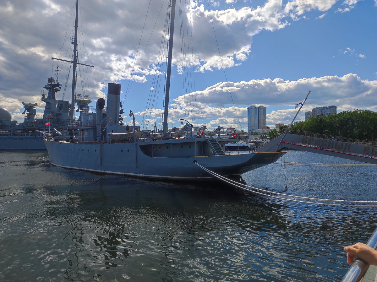 Корабельная набережная содержит 5 исторических памятников, о которых мы сейчас и расскажем. «Красный вымпел» - это сторожевой советский корабль, спущенный на воду в октябре 1910 года. Спустя 48 лет, пройдя свой нелегкий путь, 11 марта 1958 года ветеран был поставлен на вечную стоянку в бухте Золотой Рог и превращен в мемориальный корабль – музей. Сама набережная совсем небольшая – около 500 метров и распростерлась на берегу бухты Золотой Рог в центре Владивостока. Город вырос отсюда – на северном берегу бухты по приказу Муравьева-Амурского в 1860 году был создан военный пост «Владивосток», а через 20 лет получил статус города. Корабельная набережная является центром мемориальных и исторических памятников Владивостока: таких как: Мемориал славы Тихоокеанского флота, музей внутри корабля «Красный вымпел», подводная лодка С-56, Вечный огонь, Стена памяти, памятник Солженицыну, Часовня Андрея Первозванного. , а вот и 14-метровый обелиск в виде паруса. Напротив обелиска – находится всеми л