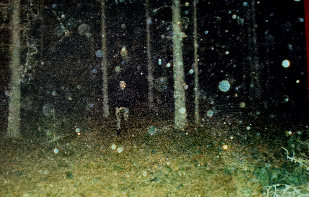 В центре поляны была поставлена пустая консервная банка с помещенной туда горящей свечой. Рядом с ней, на камне, положили кусочки колбасы и мяса, а в крышечку от бутылки плеснули немного водки. Соорудив такой импровизированный жертвенный алтарь, мы отошли назад, после чего я начал делать снимки «цифровиком» с интервалом в одну-две секунды, не сдвигаясь с места ни на сантиметр. Ночь была теплой, сухой, о присутствии влаги в воздухе не было и речи. Внешне на поляне за это время ничего не изменилось, но когда я стал просматривать на экране аппарата полученные изображения, то был просто ошарашен!