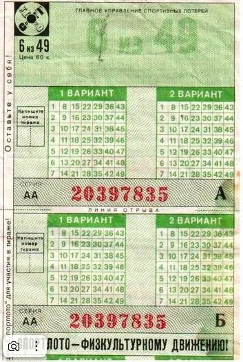 Первый тираж спортивной лотереи "6 из 49" состоялся в октябре 1970 г. Какие виды спорта входили в лотерею "6 из 49" можно посмотреть в Википедии.