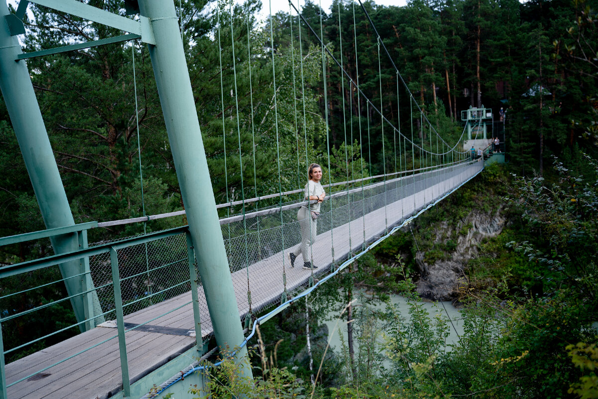 Чемал - наверное одно из самых популярных мест для остановки в Алтае. Сюда заезжают буквально все туристы, посещающие эту чудесную Республику. Расположение и близость инфраструктуры - весьма привлекательна для туристов, предпочитающих комфортный отдых. Ну а все кто приехал в Чемал в первую очередь идут на остров Патмос через подвесной мост, это очень "попсовое" место, но все-таки не посетить его мы не могли. Для меня важно привезти с отпуска фотографии, чтобы поделиться впечатлениями, и когда я готовилась к поездке, то видела фото туристов, посещающий остров Патмос и читала, что на мост могут быть даже очереди. Переживала, что не получится красиво сфотографировать саму достопримечательность без толп любопытных туристов. Мы подошли к входу на подвесной мост около 18:30 и увидели объявление, что вход доступен лишь до 18:45, поэтому мы поспешили. Видимо основной поток людей уже успели осмотреть достопримечательность, поэтому мы спокойно прошли по подвесному мосту к Храму апостола Иоанн