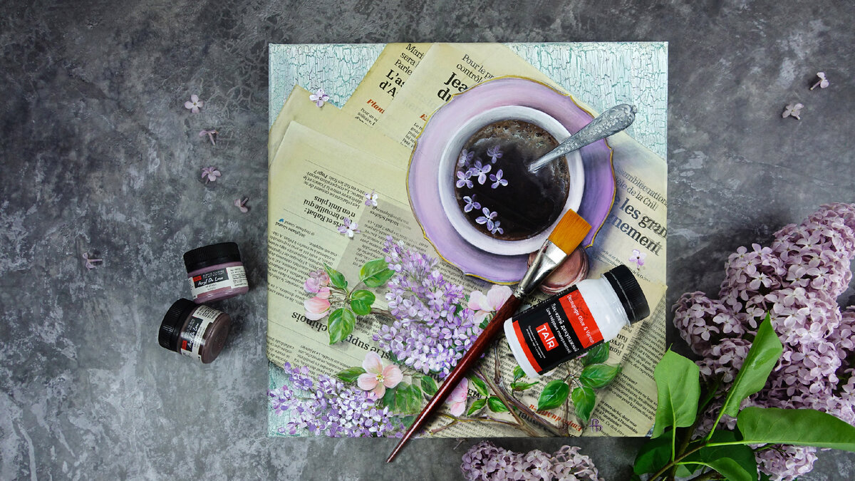 При слове «декупаж» в голове сразу проносятся образы шкатулок, бутылок и чайных домиков с приклеенными на них картинками из салфеток. Однако декупаж — это не только любимое увлечение наших бабушек. Техника приклеивания мотивов, вырезанных из бумаги (газет, журналов, салфеток и даже ткани или кружева), часто используется и в современном искусстве — живописи и различного рода коллажных работах. Иногда это позволяет создать некий красноречивый и узнаваемый образ, иногда — сделать интересную фактуру под дальнейшее окрашивание, иногда — обыграть какой-то элемент в работе. Но тогда у художников возникает резонный вопрос — на что лучше клеить? Чтобы надёжно держалось, не травмировало холст, не вступило в конфликт с красками и не испортило в конечном итоге весь замысел? Мы однозначно не рекомендуем использовать в живописных работах никакие супер-клеи, минутные либо секундные. Некоторые из них могут довольно сильно пожелтеть на солнце, другие со временем становятся хрупкими и начинают осыпаться