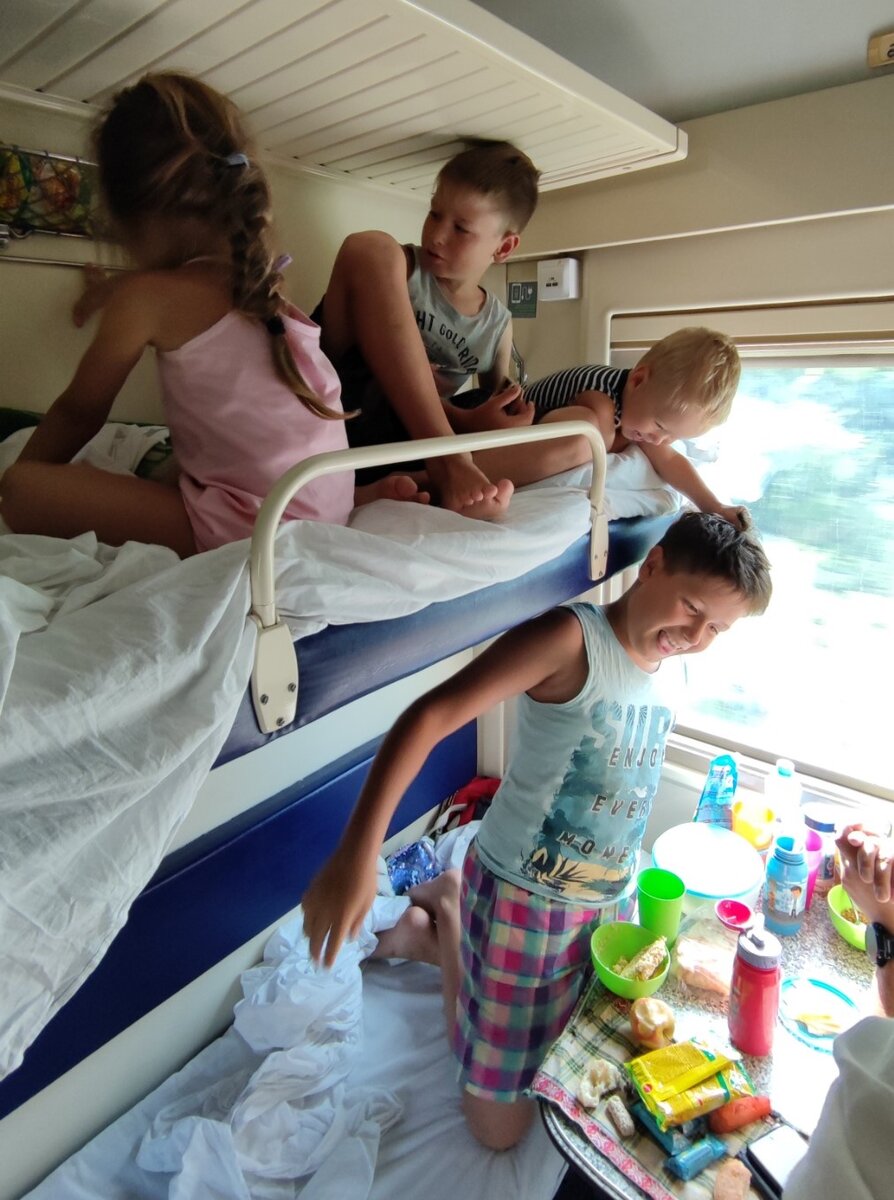 Я обожаю поезда. Я люблю плацкартный вагон. Я люблю наблюдать за людьми. Я люблю сверять по карте маршрут движения поезда. Я люблю лежать на верхней полке. Я люблю есть в поездке запечённую курицу, вареные яйца, огурцы и помидоры. Я люблю смотреть как меняется ландшафт: - Равнина перерастает в холмистую местность и снова в равнину, а тут уже бескрайняя степь; - Ооооо!!! начинается лес, а лес в свою очередь бывает хвойный и лиственный; - Смотри, смотри!!! Горы, море, ущелье, река…… Для меня поезд - это отдельное путешествие. Наша поездка от Ижевска до Сочи длилась 3 дня и 2 ночи. Для маленьких в дорогу мы взяли игрушки, развивашки, пластилин, ножницы, клей и бумагу. За кипятком, помыть посуду, выкинуть мусор, в качестве разминки, ребята ходили с нами. Без капризов не обошлось, но решалось все быстро. Со старшими путешествие это целая сказка. Мы травили байки. Рассказывали истории. Мы наглядно изучали географию – Виктор, когда узнал, что его путешествие затронуло Кавказские горы, был в д