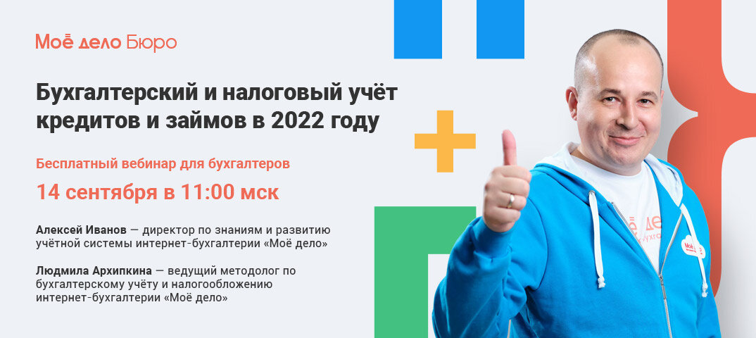 С кредитами и займами приходится сталкиваться большинству главбухов. Их учет имеет массу нюансов: от резервов под обесценение по выданным займам в бухгалтерском учете до момента признания процентов по кредиту расходом в налоговом. Как учесть эти нюансы в ежедневной работе и сформировать корректную отчетность, расскажем на вебинаре в традиционном тандеме с Людмилой Архипкиной — ведущим методологом по бухгалтерскому учету интернет-бухгалтерии «Моё дело». Я расскажу о бухгалтерском учете, а Людмила — о налоговом. Программа Бухгалтерский учет займов и кредитов: Налоговый учет займов и кредитов: Вебинар состоится 14 сентября в 11:00 по московскому времени. Участие, как всегда, бесплатное. Регистрация здесь.