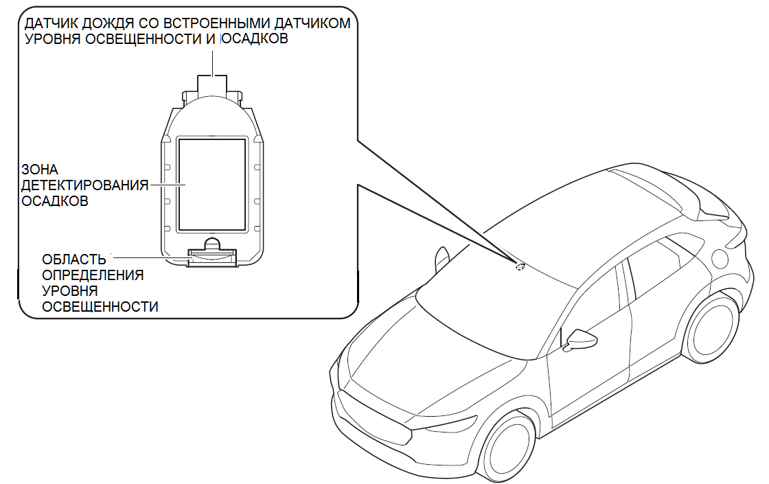 Датчик дождя используется системой стеклоочистителя для автоматического очищения от осадков ветрового стекла автомобиля. Датчик дождя расположен на кронштейне в верхней центральной части лобового стекла. В датчик дождя интегрированы датчик уровня освещения (для работы системы автоматического освещения) и датчик осадков.