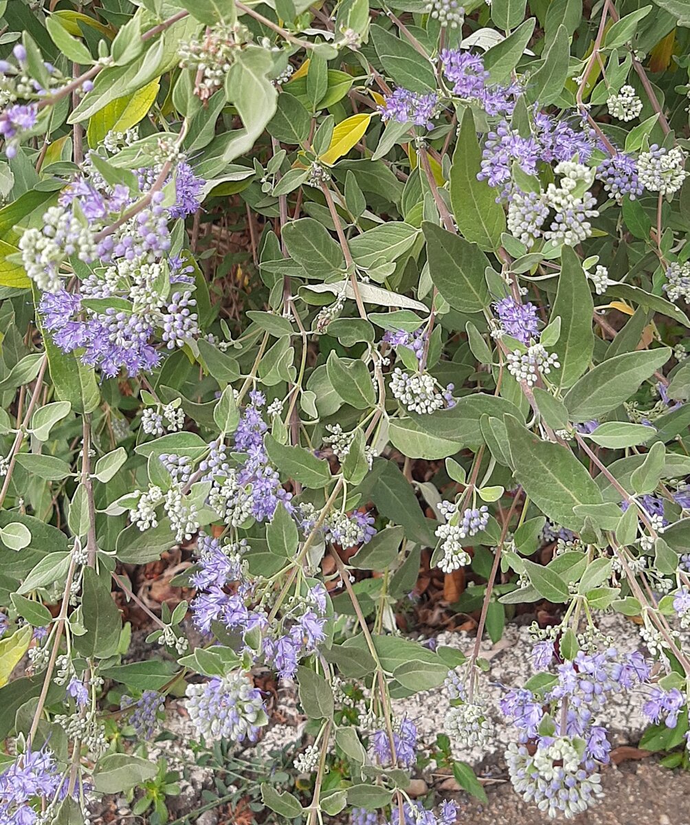 Наступила осень, но цветение в саду продолжается, на смену летним цветам приходят осенние цветы. Друзья,если вы любитель синего цвета в саду, и вы хотите, чтобы на вашем участке росли неприхотливые растения, то посадите такое замечательное растение, как кариоптерис замена лаванде. Цветет этот кустарник в осеннее время сохраняя яркие краски в вашем саду. Высотой кариоптерис от 1 до 1,5 метра.Примерно с середины лета на концах ветвей и в пазухах листьев появляются бутоны, а в конце лета у него начинается цветение, как буд-то бы синий туман опустился на растение. Очень красиво будет смотреться кариоптерис группой. Уход за кариоптерисом не сложный, главное выбрать для него солнечное место, в затененных местах он растёт плохо. Кариоптерис лучше всего посадить в рыхлый питательный грунт, на тяжёлых глинистых и песчаных почвах он растёт плохо.В посадочную яму нужно добавить перегной и золу, почва должна быть нейтральной. Поливать кариоптерис нужно умеренно, растение не выносит чрезмерно