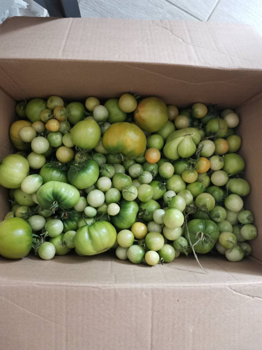Продолжаю работу работать☺️ Наконец-то перебрала помидоры собранные до похолодания. Зелёные закрыла, чтоб созревать начали. С красными думаю, что делать. Просто уже мариновала. Перчиков уже осталось меньше. Готовили фаршированные перцы. Немного заморозила резаные, и за мариновала 3 баночки. Может лечо??? Вот такой улов сегодня. 3 банки черри 1 банка перца И яблочный компот Не знаю, как многие сразу по 20 банок катают. Я больше 5-7 за раз не могу. Делитесь своими заготовками?!