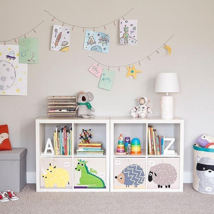 Мы считаем, что в детской обязательно должна быть организована система хранения игрушек. Советуем обзавестись красивыми местами для хранения – корзинками, ящиками, стеллажами и рассказать крохе, что это место для «жизни и ночевки» его игрушек. Сделайте «тайники» - дети обожают тайны и потайные места, поэтому и прятать игрушки будут более охотно.⠀ Итак, какие варианты хранения есть? ЯЩИКИ Бывают пластиковыми или деревянными, одного цвета или красочными с принтами героев мультиков или сказок. Имеют небольшой вес, не занимают много места. Особенно практичным и интересным будет вариант на колесиках. Такие ящики быстро перемещаются от легкого движения руки. К тому же, малышу будет занимательно и интересно катать любимые игрушки с ветерком. СТЕЛЛАЖ Он занимает мало места и тем самым не загромождает собой полезную площадь в детской. Размещается в углу или вдоль стены. Достоинством является комбинация открытых полок для быстрого доступа к нужным игрушкам с закрытыми полками, помогающие скрыть