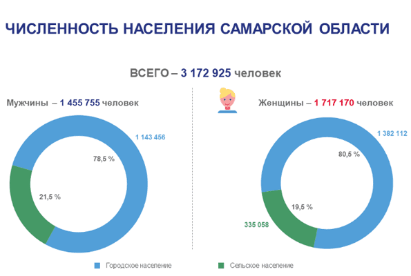 Согласно статистическим данным, в Самарской области на момент проведения переписи проживало 3 172 925 человек. Из них 1 173 393 – жители Самары, 684 709 – Тольятти, 166 498 – Сызрани, 100 414 – Новокуйбышевска, 70 236 – Чапаевска, 58 153 – Кинеля, 54 230 – Жигулевска, 46 984 – Отрадного, 28 378 – Похвистнево, 20 703 – Октябрьска.