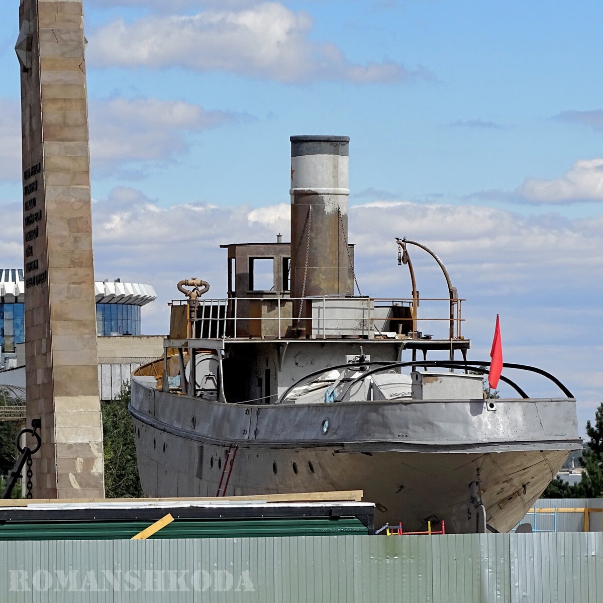 В августе этого года наконец-то начались восстановительные работы на "Гасителе". В последнее время бывший пожарный пароход "Царев", как он назывался при рождении в 1903 году, пребывал в очень плохом состоянии - встав внизу и глядя в дно можно было увидеть небо в сквозные дыры корпуса и палубы. Впрочем, надо заметить, что в печальное состояние корабль пришёл ещё в "глубоко" советские годы. После восстановления в 1977 году (см. 2-е фото) пароход выглядел так, словно прямо сейчас - в плавание: на окнах рубки и в иллюминаторах были вставлены стёкла, в положенных местах висели спасательные круги с названием корабля, присутствовала мачта и множество важных деталей. Всё это было утрачено ещё в начале 80-х гг. 3-е фото - открытка, изданная в 1989 году (а сам снимок сделан наверняка в 1985-1986 гг.). Здесь мы видим заваренные металлом окна, спасательных кругов, мачты - ничего этого уже нет. В таком состоянии (только изрядно проржавев) корабль и достоял до нашего времени. Правда, несколько раз