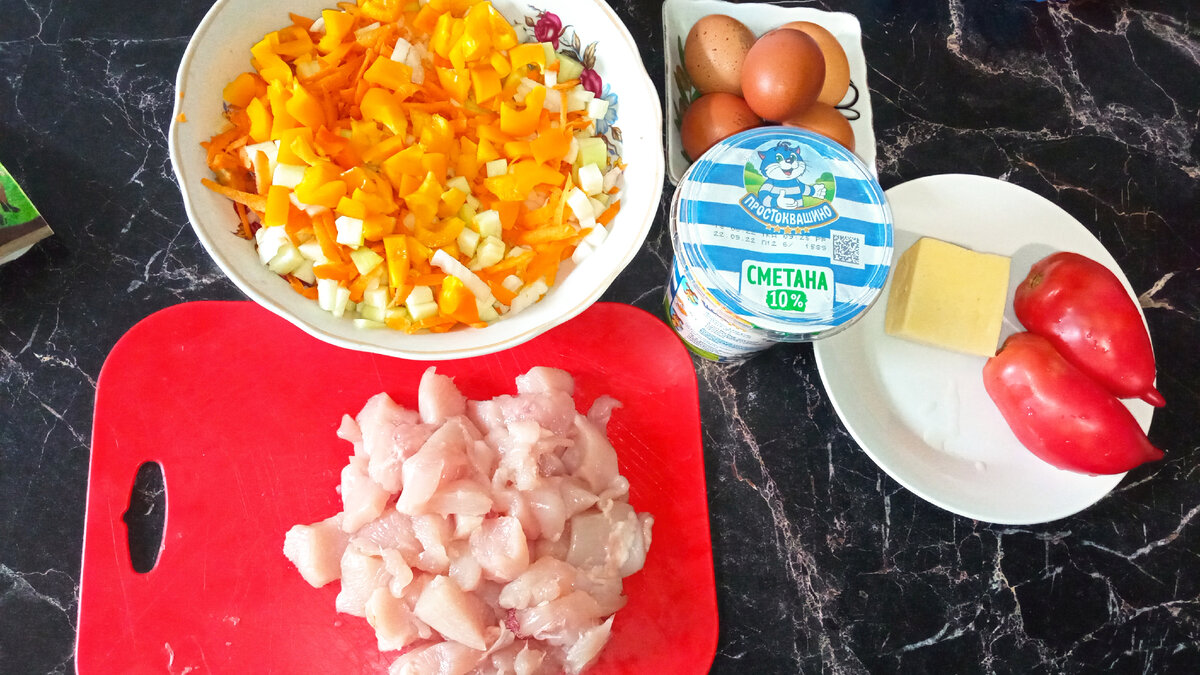 Всем привет Дорогие друзья и гости моего канала 🌷 Сегодня я готовила наивкуснейшую запеканку для всей семьи, до взрослых и детей. Для этого нам понадобится: 🔸Булгур- в сухом 100 грамм ( в отварном 850 гр) 🔸 Овощи: - Кабачок- 200гр - Морковь- 150 гр - Лук - 60 гр - Перец Болгарский- 100 гр - Помидор - 120 гр 🔸 Куриная грудка- 300 гр 🔸Яйца куриные - крупные 3-4 мелкие- 5 шт 🔸Сметана 10%- 100 гр 🔸Сыр- 70 гр 🔸Масло растительное- 20 мл 🔸Соль и специи по вкусу 1️⃣Овощи нарезаем мелко. Курицу также нарезаем небольшими кусочками. 2️⃣ Наливаем на сковороду растительное масло и тушим овощи с курицей и отвариваем булгур. Всё немного солим. 3️⃣Делаем заливку: яйца взбиваем со сметаной ,добавляем немного воды- около 50 мл , немного подсаливаем. 4️⃣ Перемешиваем булгур с овощами и курицей в форме для запекания. 5️⃣Нарезаем кольцами помидор, сыр натираем на мелкую тёрку. 6️⃣Заливаем заливкой смесь, сверху укладываем помидор и сыр. В разогретую духовку при 200 градусах отправляем наше прои