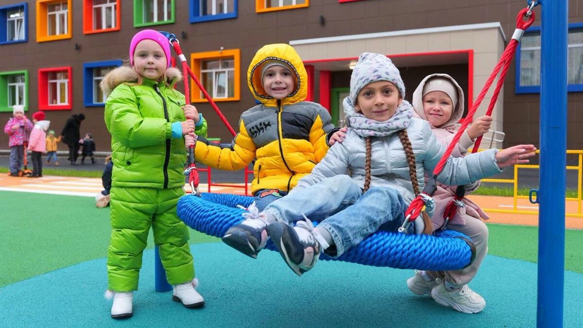 Снаружи здание облицевали керамогранитом под натуральный камень. На территории детсада установили новые площадки с яркими горками. Здесь смогут играть ребята всех возрастов. На новой спортплощадке садика есть зоны для занятий мини-футболом, волейболом и баскетболом.