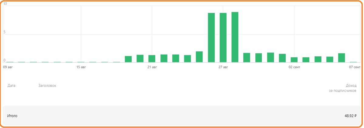 Добрый день, коллеги! Можете меня поздравить - прошло 20 дней с начала монетизации и - есть результат! Смело экстраполируя приведенный ниже график-гистограмму можно совершенно точно утверждать, что сегодня вечером я получу свои рубль-полтора и перекрою кругло-символическую цифру в 50 рублей. Далеко не каждый человек в наше неспокойное время имеет такую возможность узнать себе цену, верно? Кто не рассмотрел циферку в нижнем углу картинки - там пропечатано 48,92 рубля. Именно столько денег, на данный момент, принесли мне 26 опубликованных статей. Конечно, не все 26 - после открытия монетизации опубликовано только 6 из них, а всего деньги приносят 17 сочинений. Таким образом, 20 статей ушли на преодоление порога монетизации. Проведем небольшой статистический анализ. Статья-рекордсмен: Перевал Дятлова и похожие катастрофы. Так ли уж невероятна лавинная версия? собрала "в прокате" 30,98 рублей при 277 дочитываниях и 8 подписках. Нетрудно видеть, что это примерно 11 копеек за дочитывание.