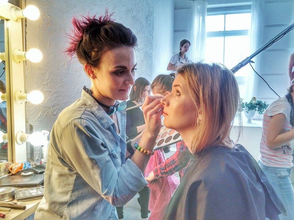 На съемочной площадке программы «Знаем русский» (телеканал «Мир») одно из обязательных условий работы редакторов с гримерами было такое – сообщать им информацию об участниках, а точнее из каких стран они будут. Телевикторина «Знаем русский» в течение пяти лет имела международный статус. В съемках принимали участие представители более 100 стран мира, все участники соревновались в знании русского языка. Гримерам было важно иметь определенную палитру с пудрой, чтобы учитывать особенности цвета кожи участников перед съемками. Все, кто хоть раз был на съемках, знает, что перед съемкой все герои программ проходят через гримерный цех. Там «доводят» внешний вид ведущих или участников съемок до имиджевых высот и определенных требований. Например, студийные софиты – один из главных «врагов» гримеров на съемках. Нужно следить, чтобы находящиеся в кадре люди были загримированы и не «блестели». Гримеров можно смело отнести к разряду художников, только вместо холста – лицо актера или ведущего. Они
