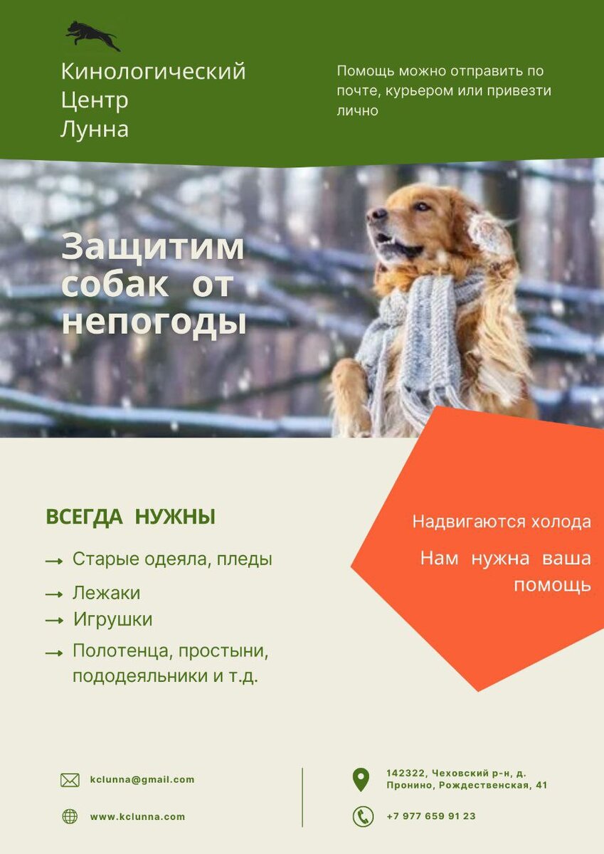 Здравствуйте товарищи подписчики! Впереди холода, а это значит, что нам нужна ваша помощь! Объявляем сбор ненужных вам вещей Подопечным центра всегда необходимы: Если у вас есть что-то старое или ненужное, не торопитесь выбрасывать, поделитесь лучше с нами и наши собаки и мы будем вам благодарны! Помощь принимаем по адресу: 142322, Чеховский округ, д. Пронино, Рождественская, 41 Можно отправить почтой, курьером или лично Сайт #кц лунна #помощь животным #нужна помощь #помощь центру #собаки #собака друг