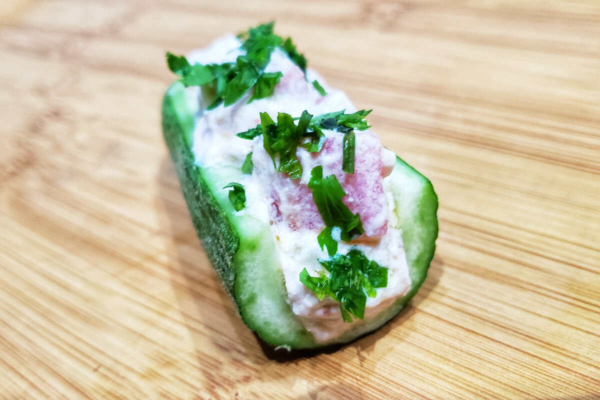 Лодочки из огурца фаршированные сливочным сыром и тунцом