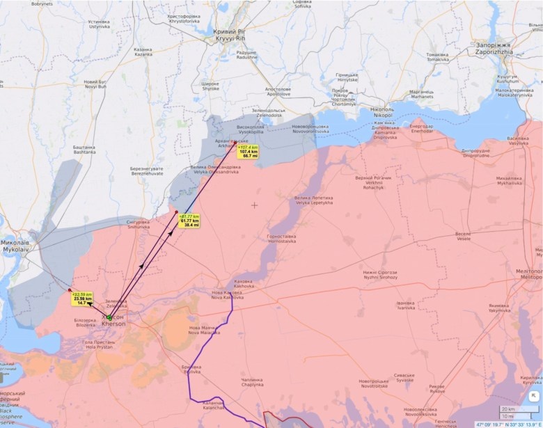 Хотя Генштаб Украины (УГС) хранил молчание после сообщений от 29 августа о прорыве российской обороны в нескольких точках Херсонской области, теперь ясно, что таких прорывов не было. И это, конечно, ясно даже наблюдателям НАТО, которые следят за действиями (или их отсутствием) в режиме реального времени. Линии контроля, установленные в марте, проходят примерно на полпути между городами Херсон и Николаев на юге, примерно в 60 км к северо-северо-востоку от города Херсон вокруг украинского плацдарма через реку Ингулец и примерно в 100–110 км к северо-востоку от города Херсон от Архангельского. до Днепра, и, практически, не изменились.