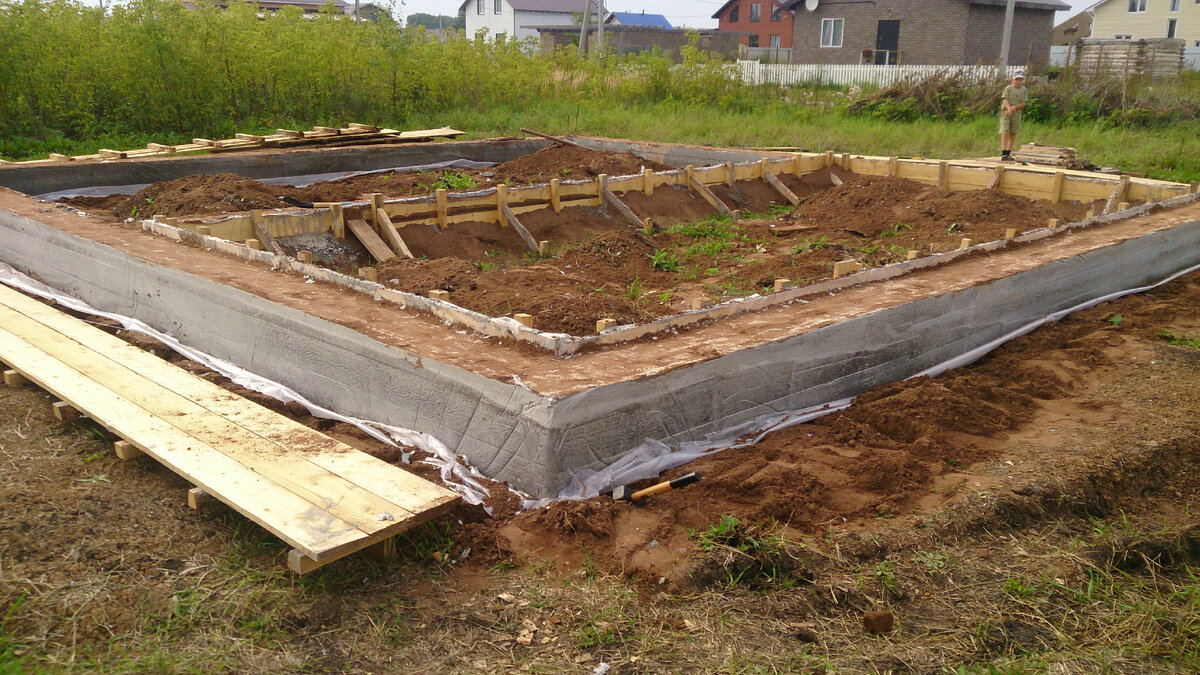 Пришло время снять опалубку с фундамента. Всю неделю поливали фундамент, не давая ему высохнуть слишком быстро, чтобы не появились трещины.