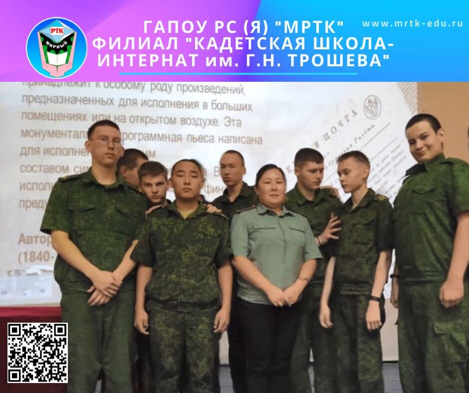 210 лет со дня Бородинского сражения отметили в «КШИ им. Г.Н. Трошева». Видео. В ГАПОУ РС (Я) «МРТК» филиале «Кадетская школа-интернат им. Г.Н. Трошева» прошла интеллектуальная игра «Бородинское сражение» среди обучающихся 9-10 классов. В начале игры ребятам был представлен видеоролик «Битвы и сражения: Бородинская битва». Вопросы были составлены по определенным темам: «Бородинское сражение в лицах», «Культурные особенности, итоги и последствия», «Ход боевых действий». Вопросы в игре представлены различной сложности и направленности, например, в одном из заданий ученикам нужно было "оживить" картину художника Анатолия Павловича Шепелюка «С.В. Герасимов. М.И. Кутузов на Бородинском поле. 1952 год». Атмосфера была спокойная, ребята все активно принимали участие в обсуждении. Лариса Батлаева, педагог-организатор КШИ. Пресс-служба ГАПОУ РС (Я) «МРТК» филиал «Кадетская школа-интернат им. Г.Н. Трошева». #КадетскаяшколаинтернатимГНТрошева #КШИТрошева #кадеты #Чернышевский #МРТК #Мирнинскийк