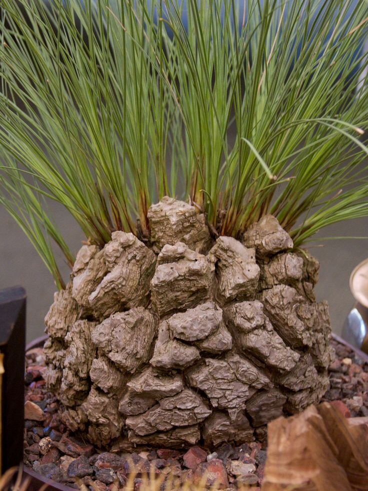 Многие цветоводы выращивают нолину (слоновья нога, бутылочное дерево, бокарнея) - это растение известно под многими названиями. Нолина достаточно популярна и очень красива, но мало кто знает, что у этого растения есть еще один близкий родственник. Справедливости ради надо сказать, что встречается это растение редко, выращивают его в основном коллекционеры. Но возможно, вам будет интересно с ним познакомиться. Итак, экзотический Калибанус Хукера. Роднит калибанус и нолину общая родина - полупустыни Мексики. Там эти растения встречаются повсеместно и имеют внушительные размеры. У нас выращиваются только в качестве горшечной культуры, а из-за очень медленного роста размеры калибануса более чем скромные. Назвать калибанус "очень красивым" как-то не поворачивается язык, хотя растение бесспорно представляет интерес для ценителей экзотики. Калибанус имеет вид приплюснутого пенька с сильно растрескавшейся корой из щелей которого пучками растут длинные узкие листья, напоминающие листья злаковы