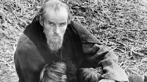 И вот, пока строилась колокольная яма, мы снимали разные эпизоды на натуре. Весь эпизод скомороха: он снимался одним куском, 250 метров; декорацию мы построили. Потом была история с полем льна (если вы помните такой эпизод: трое живописцев идут через поле со скирдами). Когда мы ехали на съемки, то выбрали это поле. Потом прошло время, мы его не снимали, не снимали, не снимали, наконец решили завтра снимать. Я думаю, дай-ка поеду проверю. Приезжаю — все убрано, поля нашего нет. Ну, думаю, далеко они его не могли убрать. Мне все это поле заново поставили, и мы снимали их троих, бегущих к дереву. В то время, когда снимали колокольную яму, готовили Владимир. Очень долго Андрей Арсеньевич с Юсовым искали место для «поисков глины». Мы объездили все окрестности Суздаля и Владимира и нигде никакой глины найти не могли. (Это когда Бориска кричит, что глину нашел.) И случайно, уже отсняв колокольную яму, мы увидели: ручеек бежит, и огромная такая глыба с глиной; уже весна началась, и она обнажилась. У этого места мы эту сцену и снимали.